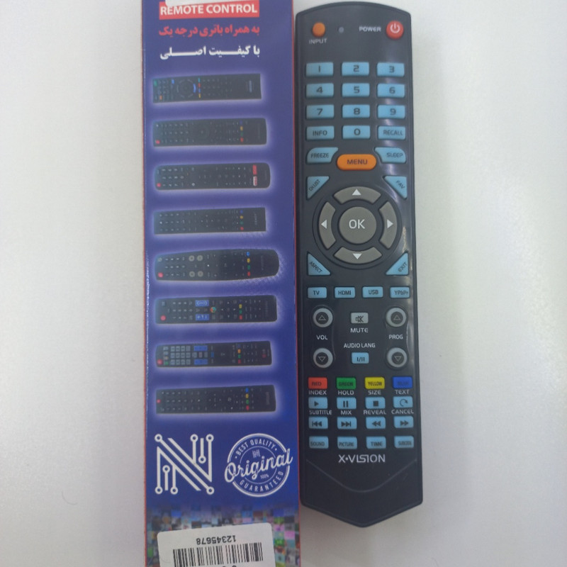 ریموت کنترل ak875223456 به همراه دوعدد باطری الکالاین و شیش عدد پلاستیک محافظ حرارتی